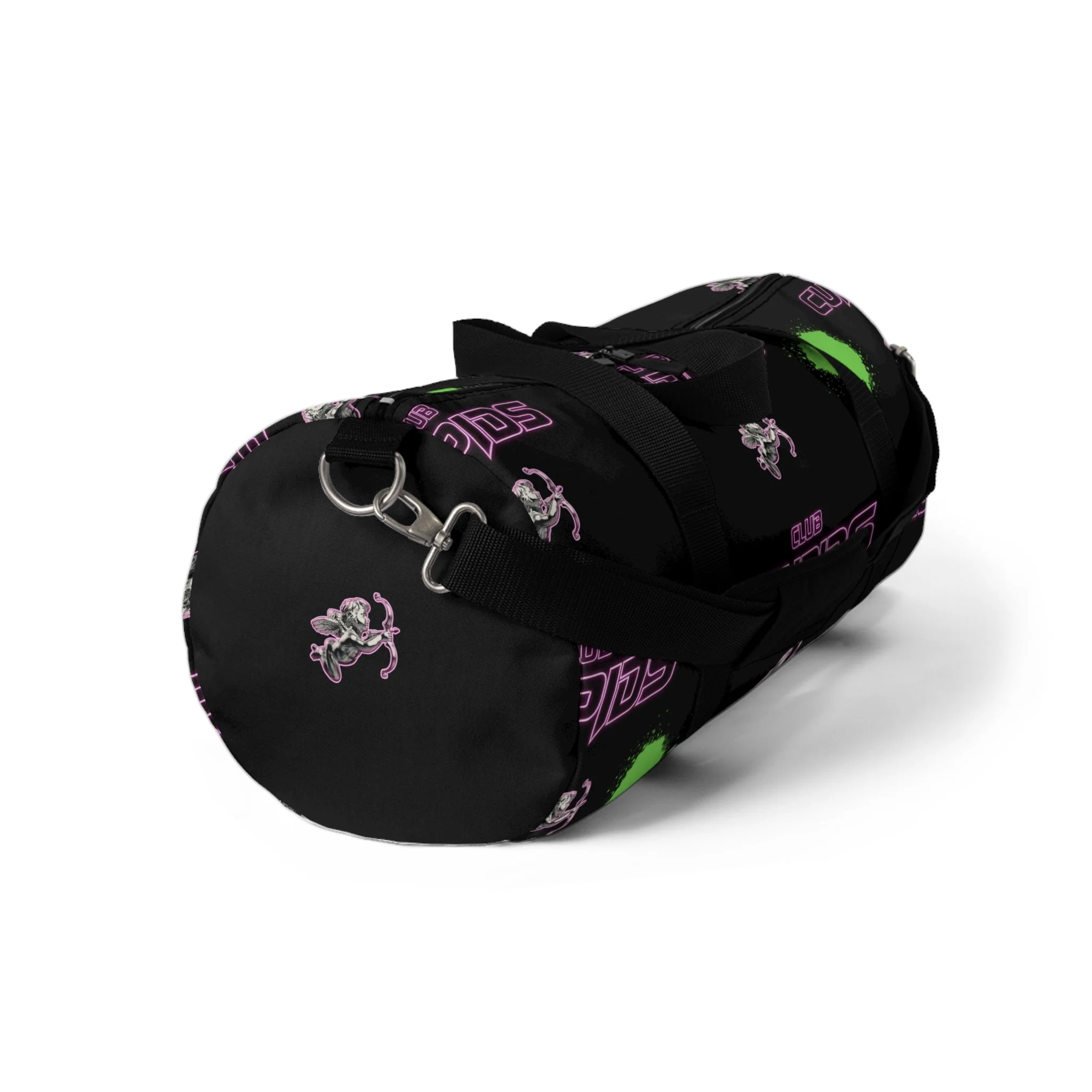 Featuring a sleek black base with bold neon-style Cupids branding, playful cupid graphics, and splashes of vibrant colour, this bag is made to stand out wherever you take it. Whether you're heading to the gym, a weekend getaway, or somewhere a little more exclusive, it carries that unmistakable Cupids energy.