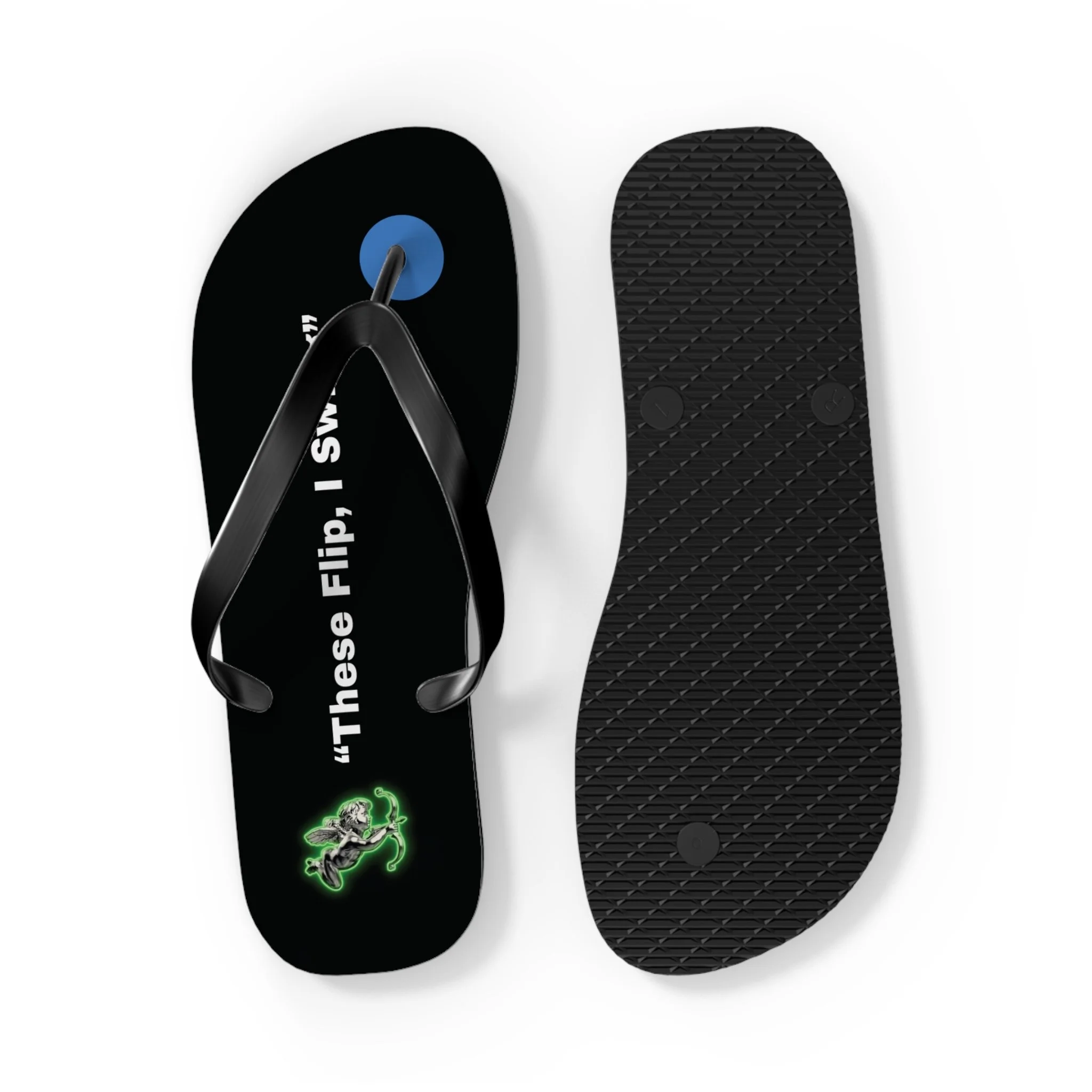 Designed for those who know exactly what kind of night they’re walking into, these sleek black slides feature a bold, playful slogan and neon cupid accents that glow with attitude. Whether you're in club , party-bound, or heading somewhere a little more exclusive, these aren’t just flip flops — they’re an invitation.